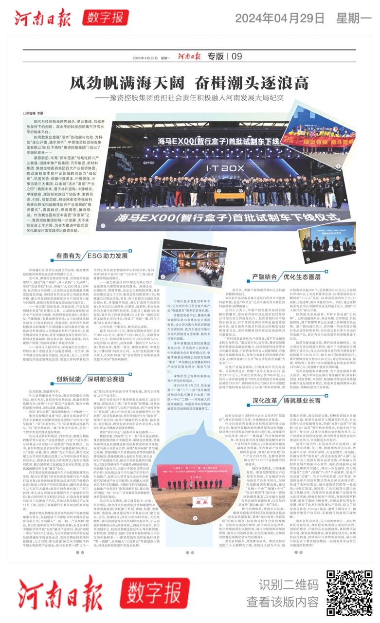 近日,河南省工業和信息化廳公布《2024年度河南省創新型中小企業擬公告名單》,中原豫資投資控股集團有限公司(以下簡稱豫資控股集團)旗下4家子公司榮登榜單,分別為中豫數聯(河南)科技有限公司、河南省中豫融資擔保有限公司、河南中豫信用增進有限公司、智行盒子(河…...